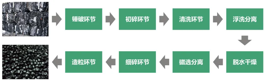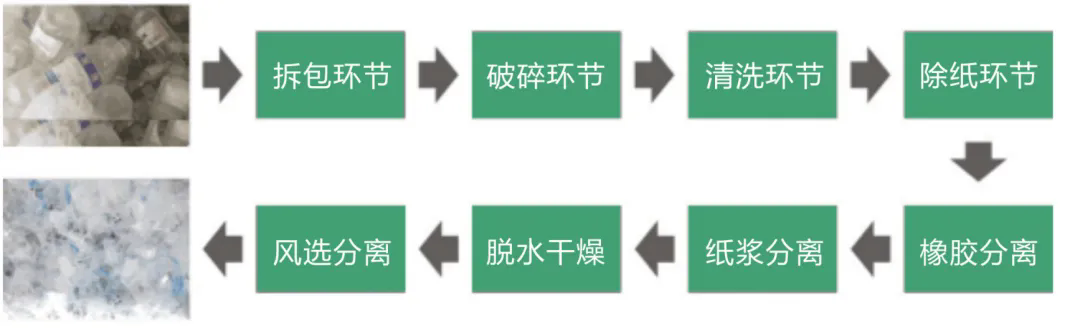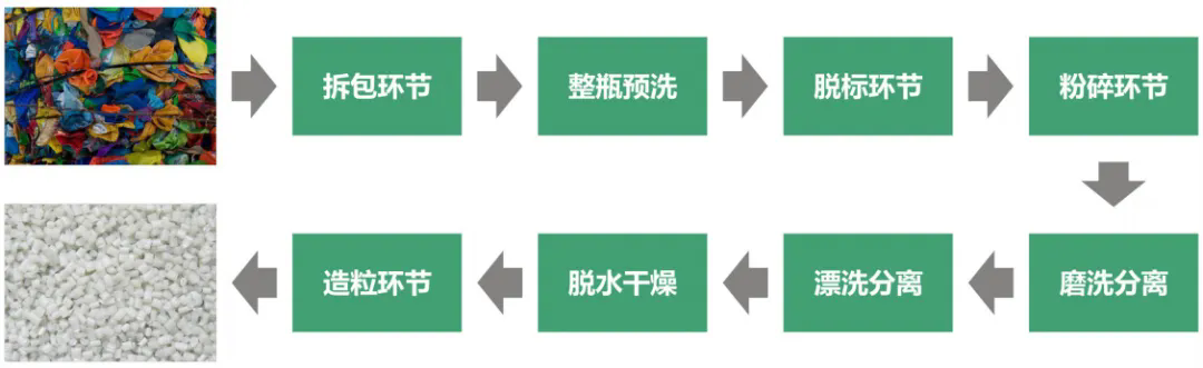 整套設(shè)備從拆包到破碎-清洗-除紙-除橡膠-干燥-分離瓶嘴料均可全自動化流水生產(chǎn)。生產(chǎn)出來的成品顆?;具_到了新料的品質(zhì),廣泛用于注塑擠出、加工造粒等領(lǐng)域。