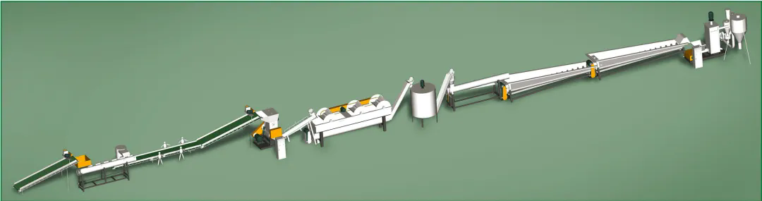 此套生產(chǎn)線有效解決了廢舊薄膜(農(nóng)膜、地膜、包裝膜、垃圾膜等)清洗過程工程量和耗水量偏大的問題,研發(fā)了一套專門針對農(nóng)膜地膜類泥沙含量高的破碎清洗處理線,很大程度的提高了產(chǎn)能,降低了水耗和電耗。整套設(shè)備從拆包到粗碎-除沙-細(xì)碎-清洗-脫水-造粒均可全自動化流水生產(chǎn),生產(chǎn)出來的成品顆?;具_到了新料的品質(zhì),廣泛用于吹膜、注塑擠出、回收造粒等領(lǐng)域。
