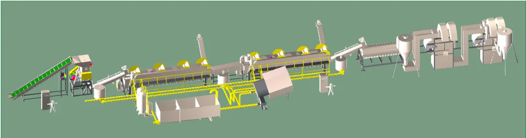 此套清洗回收生產(chǎn)線主要應(yīng)用于回收汽車內(nèi)外飾塑料件、中空包裝桶、廢舊物流托盤、家電外殼(ABS、PS脫漆清洗)等方面。根據(jù)不同的物料特性,設(shè)計針對性的回收方案。提供配套的分揀輸送帶、高速清洗機、塑料表面不干膠標(biāo)簽的去除、金屬分離器、水循環(huán)處理系統(tǒng)等。
