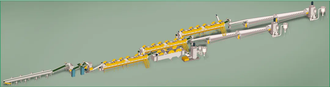 本設(shè)備生產(chǎn)出高質(zhì)量的PET瓶片,可用于生產(chǎn)PET再生滌綸等長纖產(chǎn)品和其他高質(zhì)量PET相關(guān)產(chǎn)品。該生產(chǎn)線外觀精美、能耗低、產(chǎn)量高,實用可靠。全新的漂洗裝置可以隨破隨洗,大大提高了生產(chǎn)效率,且洗料干凈,達到一級凈片要求。